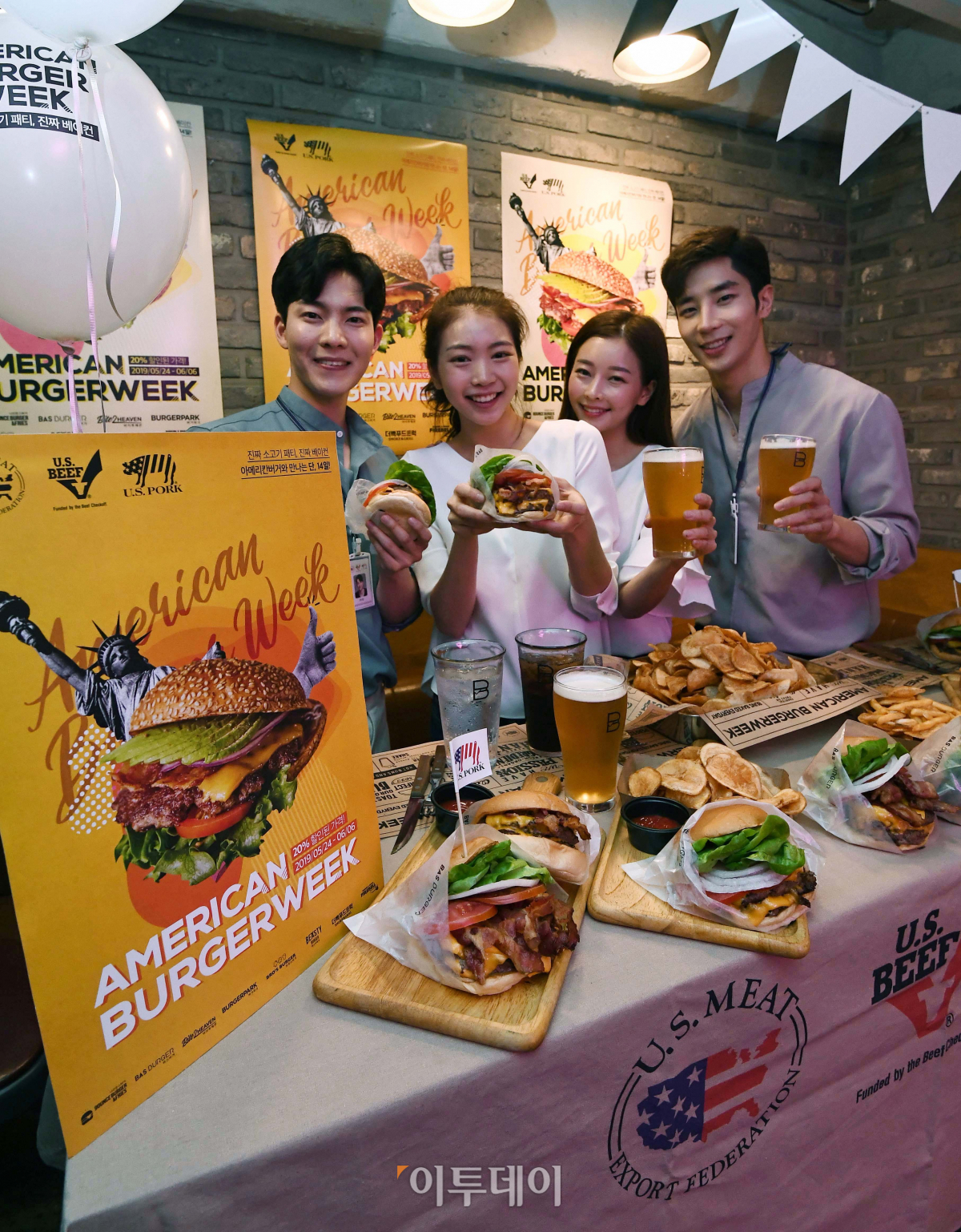 미국육류수출협회가 23일 서울 중구 바스버거 광화문점에서 ‘제3회 아메리칸 버거위크’를 알리고 있다. 미국육류수출협회는 24일부터 내달 6일까지 수제버거 전문점 8곳, 23개 지점에서 아메리칸 버거위크를 개최하며 소비자들은 최대 20% 할인된 가격에 아메리칸 수제버거를 맛볼 수 있다. 신태현 기자 holjjak@