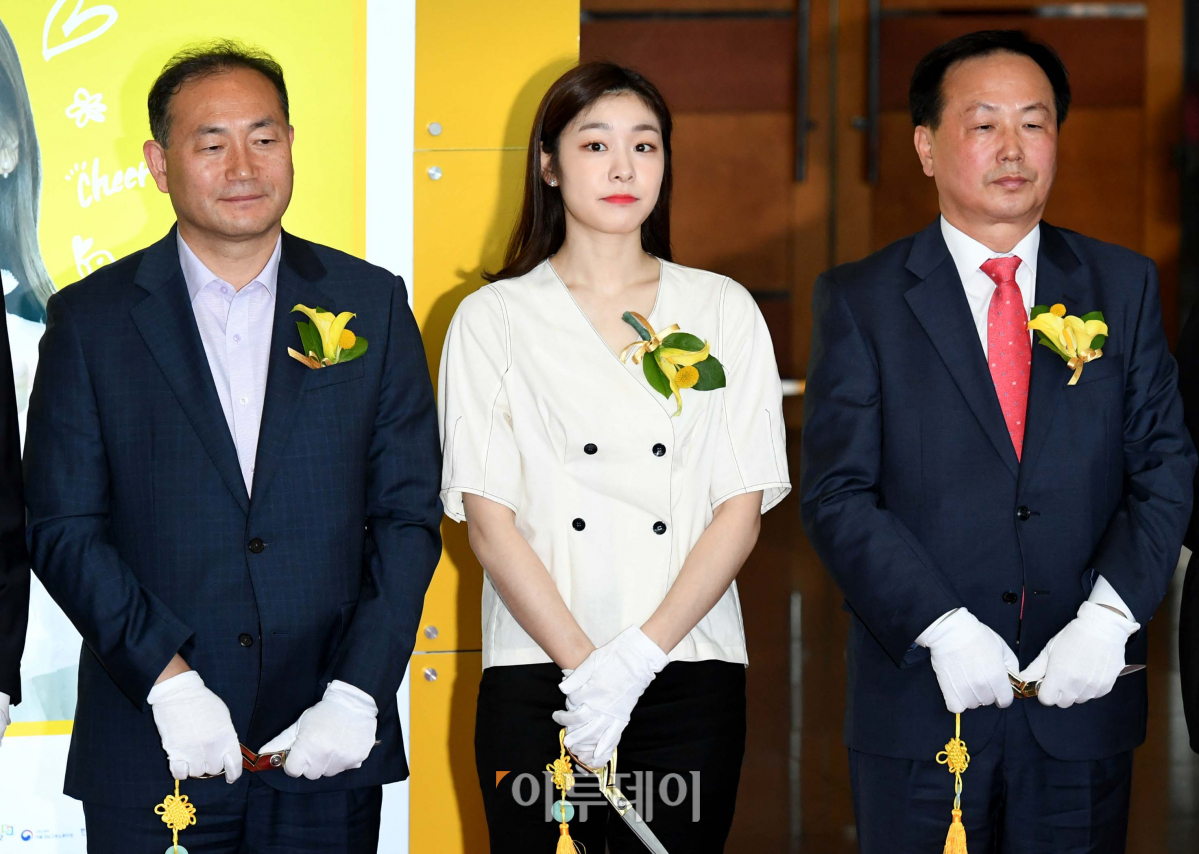 KB금융그룹 홍보모델인 김연아 전 피겨스케이팅 선수가 28일 서울 강남구 영동대로 코엑스에서 열린 ‘2019 제1차 KB굿잡 우수기업 취업박람회’ 개막식에서 테이프 커팅을 준비하고 있다. 250여개 중소·중견기업이 참여하는 이번 박람회는 29일까지 열린다. 신태현 기자 holjjak@