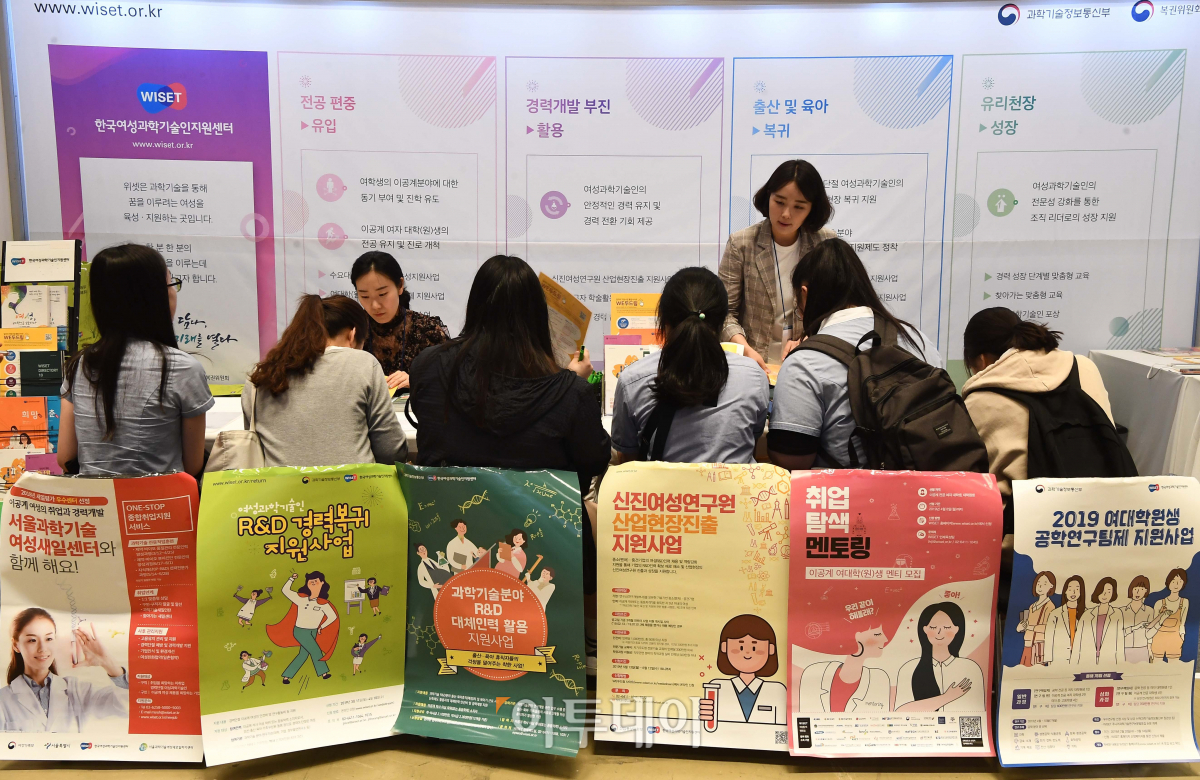 28일 서울 강남구 영동대로 코엑스에서 열린 ‘2019 제1차 KB굿잡 우수기업 취업박람회’에서 구직자들이 채용상담을 하고있다. 250여개 중소·중견기업이 참여하는 이번 박람회는 29일까지 열린다. 신태현 기자 holjjak@