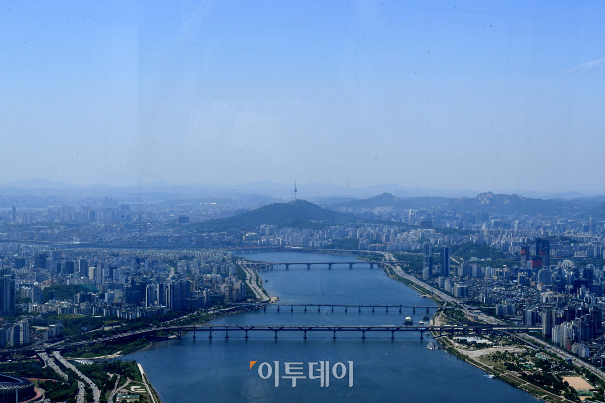 전국이 맑고 쾌청한 날씨를 보인 28일 서울 송파구 송파대로 롯데월드타워 서울스카이에서 바라본 하늘이 푸르다. 신태현 기자 holjjak@
