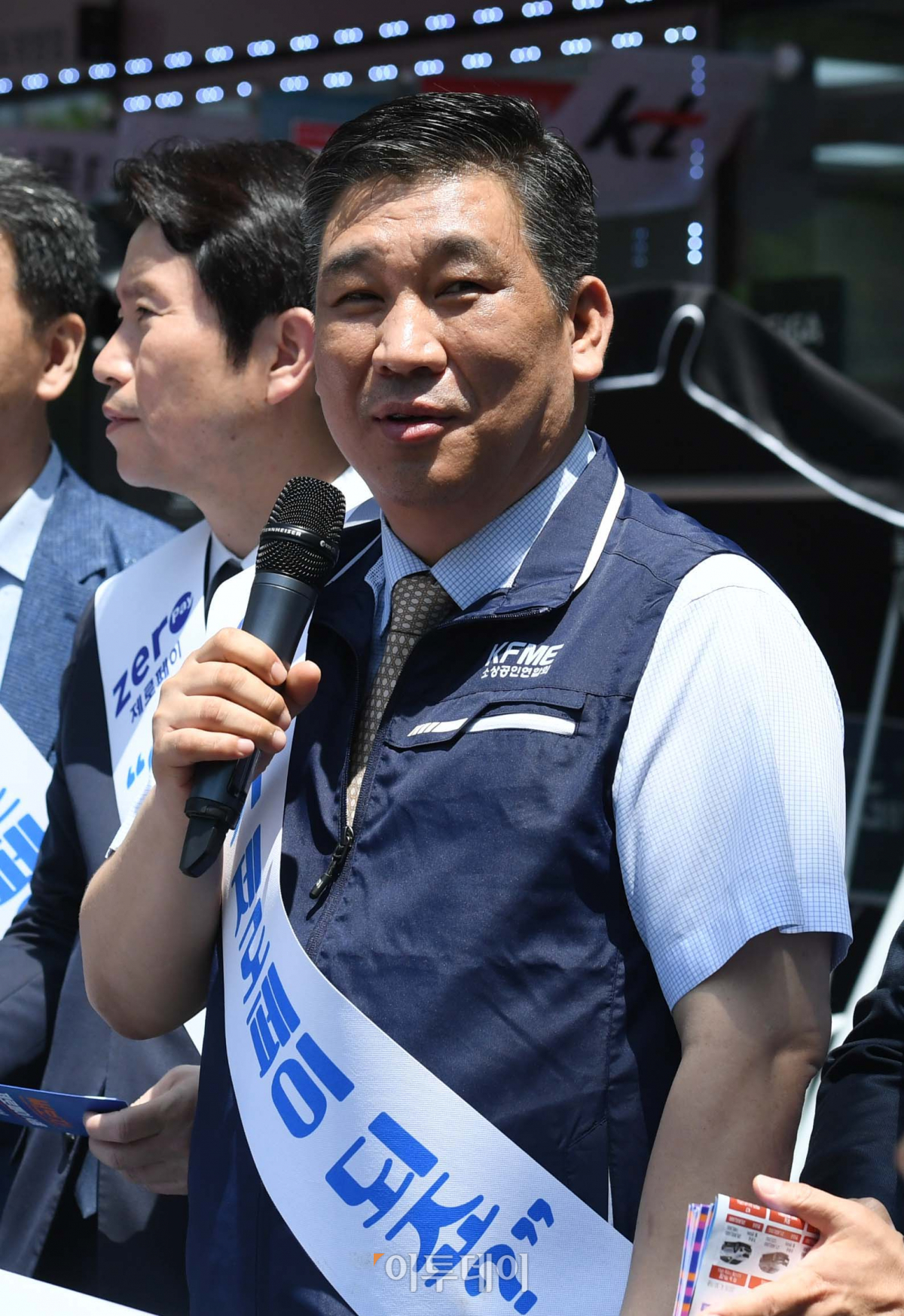 최승재 소상공인연합회장이 29일 서울 여의도의 한 편의점에서 소상공인 간편결제 서비스인 제로페이 시연에 앞서 인사말을 하고 있다. 신태현 기자 holjjak@