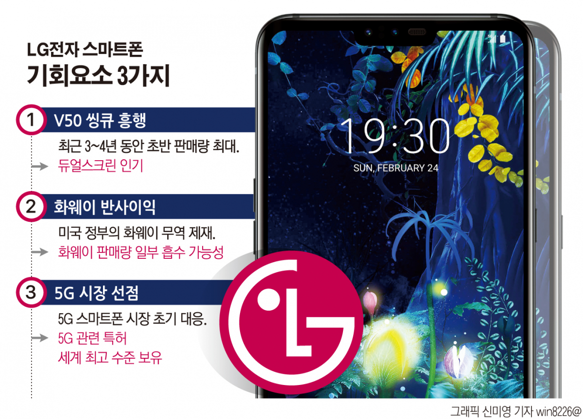 여기에 화웨이 사태 반사 이익이 기대되는 등 LG전자 스마트폰 사업이 드디어 반등의 기회를 맞았다는 평가가 나온다.