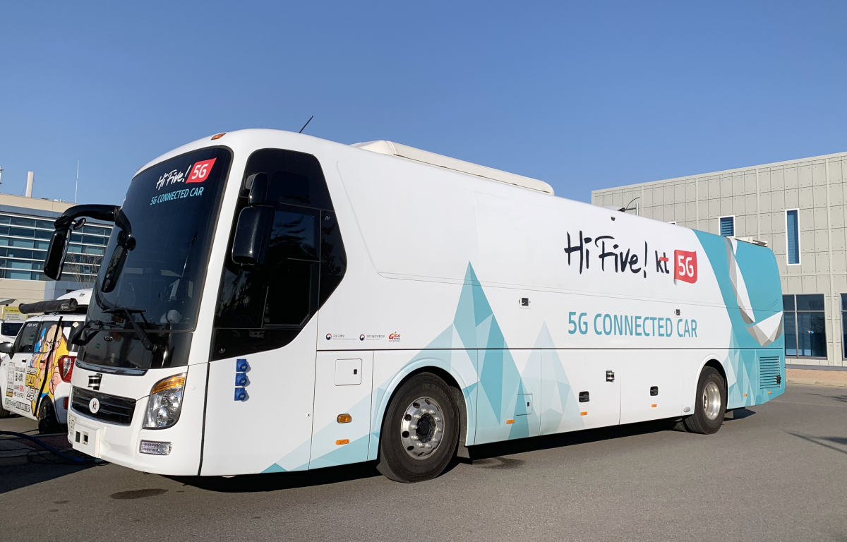 KT는 31일 경기도시공사와 차세대융합기술연구원이 주관하는 '경기도 자율주행센터 개소식'에서 차량·사물 간 양방향 통신(V2X) 기술을 활용한 자율주행 관제와 5G 버스를 선보였다.