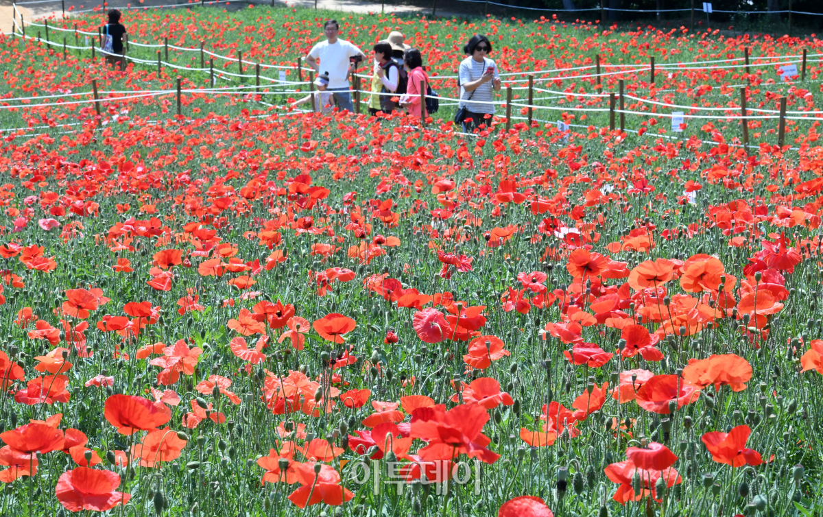 서울 낮 기온이 28도, 대구가 31도를 기록하는 등 전국이 쾌청한 초여름 날씨를 보인 2일 서울 송파구 올림픽로 올림픽공원에 붉게 핀 꽃양귀비가 계절의 정취를 전하고 있다. 기상청은 4일 서울 낮 기온이 30도를 나타내는 등 기온이 이번 주 중반까지 오름세를 보일 것으로 예상했다. 신태현 기자 holjjak@