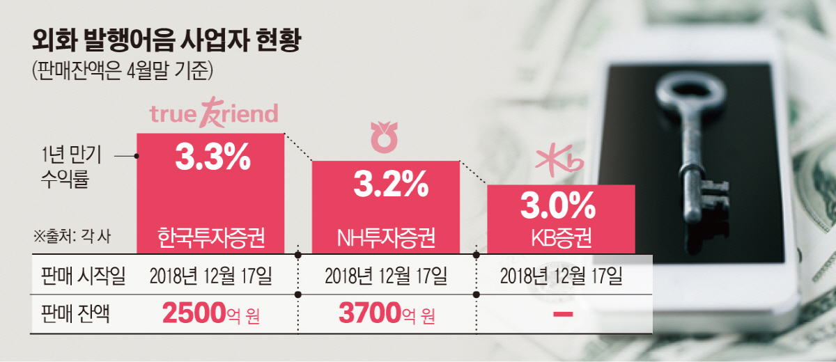 외화 발행어음은 지난해 11월 27일 기획재정부의 유권해석으로 단기금융업(발행어음)을 인가받은 종합금융투자사업자의 외화표시 발행어음 업무를 허용하면서 시작됐다. 한국투자증권은 같은 해 12월 17일, NH투자증권이 올해 1월 28일 해당 상품을 잇달아 출시했다.