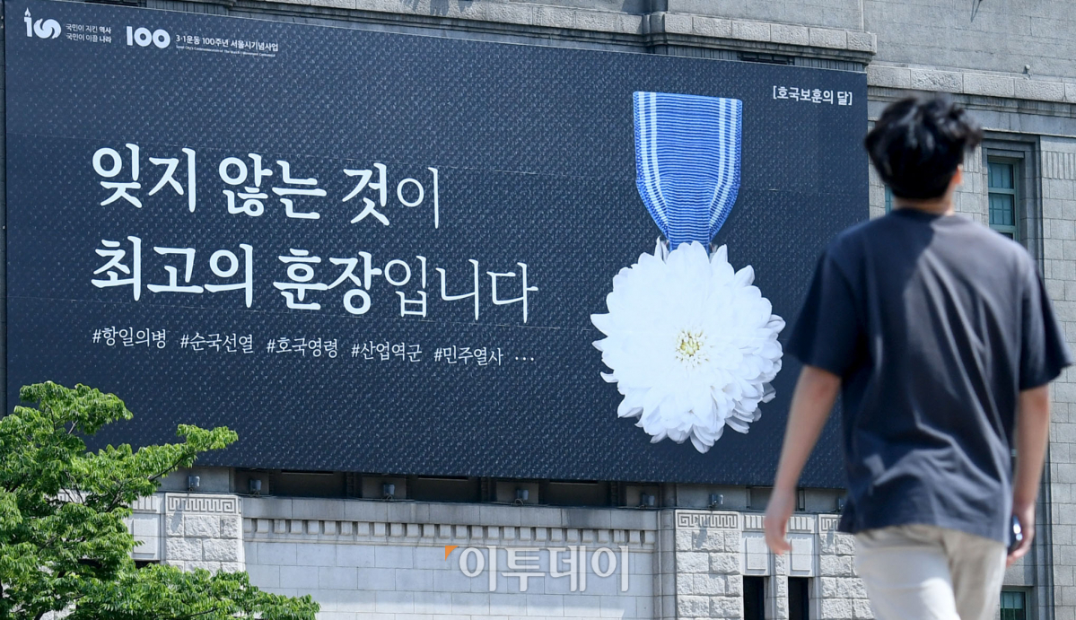 현충일을 사흘 앞둔 3일 서울 중구 세종대로 서울도서관 꿈새김판에 호국보훈의 달을 맞아 ‘잊지 않는 것이 최고의 훈장입니다’란 문구가 게시돼 있다. 신태현 기자 holjjak@