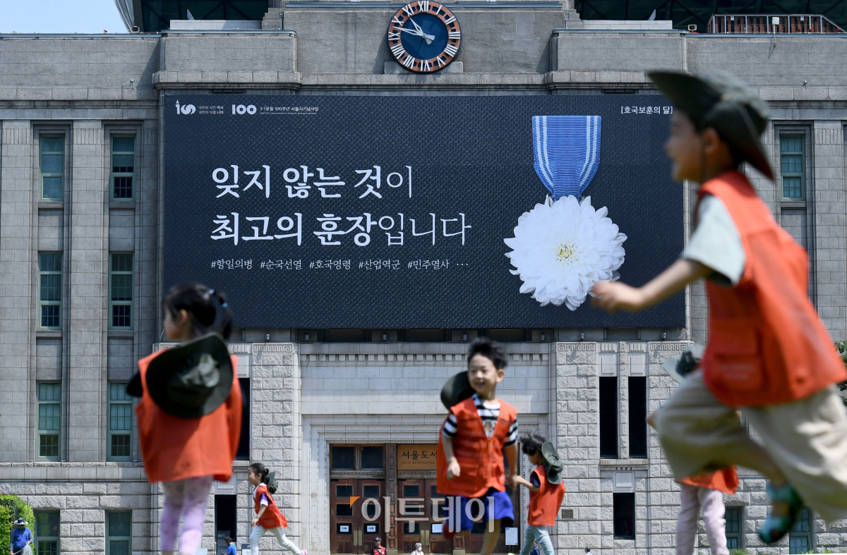 현충일을 사흘 앞둔 3일 서울 중구 세종대로 서울도서관 꿈새김판에 호국보훈의 달을 맞아 ‘잊지 않는 것이 최고의 훈장입니다’란 문구가 게시돼 있다. 신태현 기자 holjjak@