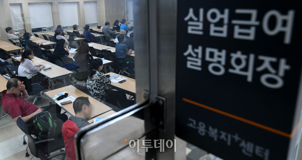 실업자의 구직활동을 지원하기 위해 지급하는 구직급여 규모가 지난달 역대 최대기록을 또 경신한 가운데 10일 서울 중구 삼일대로 서울고용복지플러스센터에서 구직자들이 구직급여에 대한 설명을 듣고 있다. 이날 고용노동부가 발표한 ‘5월 노동시장 동향’에 따르면 지난달 구직급여 지급액은 7587억 원으로, 작년 5월(6083억 원)보다 24.7% 증가했다. 이는 월별 구직급여 지급액 역대 최대기록인 지난 4월 7382억 원을 넘어선 것이다. 신태현 기자 holjjak@