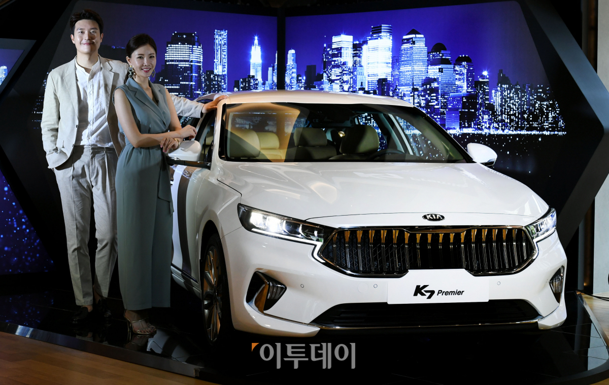 기아자동차가 12일 서울 강남구 압구정로 BEAT360에서 ‘K7 프리미어(PREMIER)’ 사진영상 발표회를 갖고 있다. 이날부터 사전계약을 시작하는 K7 프리미어는 2016년 출시 후 3년만에 선보이는 부분변경(페이스리프트) 모델로 기아차의 차세대 엔진 스마트스트림 G2.5 GDi를 처음으로 적용, 연비와 정숙성을 개선했다. 신태현 기자 holjjak@