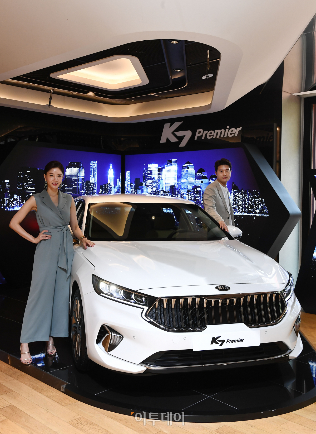 기아자동차가 12일 서울 강남구 압구정로 BEAT360에서 ‘K7 프리미어(PREMIER)’ 사진영상 발표회를 갖고 있다. 이날부터 사전계약을 시작하는 K7 프리미어는 2016년 출시 후 3년만에 선보이는 부분변경(페이스리프트) 모델로 기아차의 차세대 엔진 스마트스트림 G2.5 GDi를 처음으로 적용, 연비와 정숙성을 개선했다. 신태현 기자 holjjak@