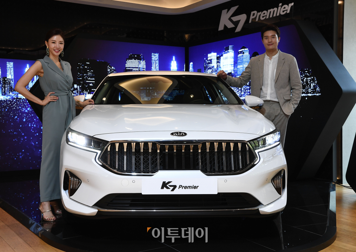 기아자동차가 12일 서울 강남구 압구정로 BEAT360에서 ‘K7 프리미어(PREMIER)’ 사진영상 발표회를 갖고 있다. 이날부터 사전계약을 시작하는 K7 프리미어는 2016년 출시 후 3년만에 선보이는 부분변경(페이스리프트) 모델로 기아차의 차세대 엔진 스마트스트림 G2.5 GDi를 처음으로 적용, 연비와 정숙성을 개선했다. 신태현 기자 holjjak@