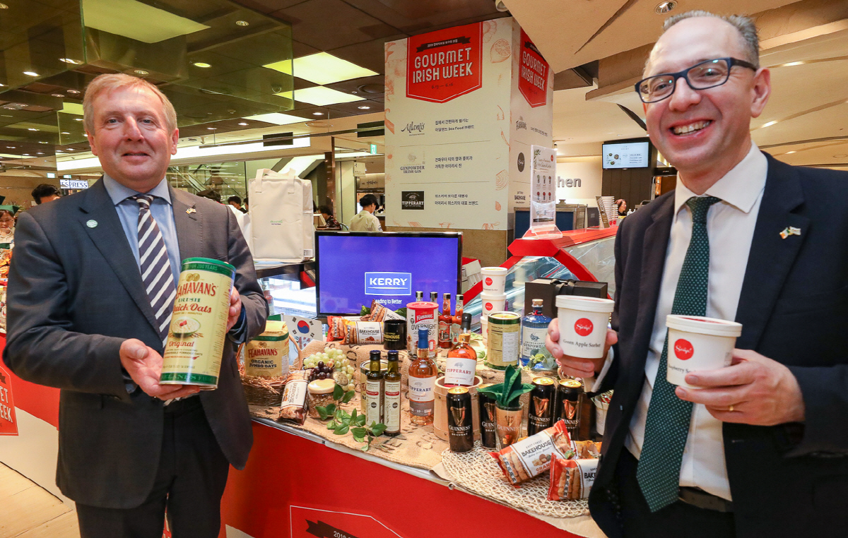 현대백화점은 16일까지 압구정본점 지하 1층 행사장에서 ‘고메 아이리시 위크’를 실시한다고 13일 밝혔다. 이번 행사에는 230년 전통의 오트밀 브랜드 ‘플라하반’, 프리미엄 소르베를 전문으로 하는 ‘스쿱’, 세계적인 흑맥주 브랜드 ‘기네스’ 등 총 50여 개 아일랜드 식품 브랜드를 비롯해 평소 접하기 힘든 ‘티페레리’, ‘쉐드’ 등 아일랜드 전통주도 함께 선보인다. 사진제공 현대백화점