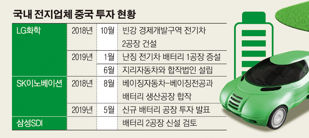 한국산 배터리를 전략적으로 배제해온 중국 전기차 시장의 빗장이 풀릴 시기가 다가오면서 국내 전지사들의 중국 현지 투자가 러시를 이루고 있다.