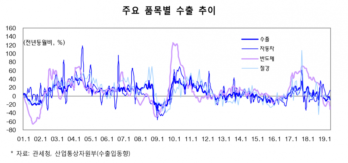 우리 경제의 긍·부정적 요인이 혼재된 듯하지만, 중국 등 세계 경제 둔화, 반도체 업황 부진 지속, 미·중 통상마찰 확대 등 대외 여건의 불확실성이 커지고 있어 전망은 밝지 않다.