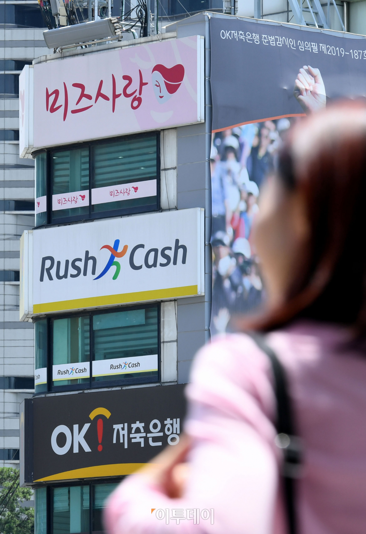 상호금융조합, 저축은행, 캐피탈사 등 제2금융권에서 받는 가계대출에 원리금 상환액을 연간 소득으로 나눈 총부채원리금상환비율 (DSR) 규제가 시행된 17일 서울의 한 건물에 저축은행과 대부업체 간판이 나란히 걸려 있다. DSR 도입에 따라 상호금융조합은 현재 평균 261%인 DSR을 내후년 말까지 160%로 낮춰야 하며, 저축은행과 캐피탈사는 110% 안팎이던 DSR을 90%로, 보험사는 73%에서 70%로 조정해야 한다. 2금융권이 DSR을 낮추기 위해 대출을 억제하면 다중채무자 및 소득 증빙이 어려운 농어민, 주부, 프리랜서 등은 대출 문턱이 높아져 사금융과 대부업체로 내몰리며 이자 부담이 커질 것이란 우려도 나온다. 신태현 기자 holjjak@