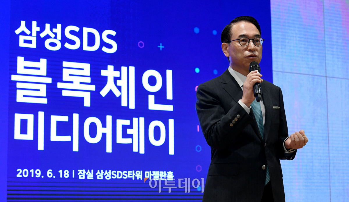 홍원표 삼성SDS 대표이사가 18일 서울 송파구 올림픽로 삼성SDS에서 열린 ‘블록체인 미디어데이’에서 인사말을 하고 있다. 삼성SDS는 이날 행사를 통해 블록체인을 도입하는 기업들의 고민을 소개하고, 그 해결방안을 담은 블록체인 사업 방향인 융복합(Convergence)·연결(Connectivity)·클라우드(Cloud) 등 ‘3C’를 제시했다. 신태현 기자 holjjak@