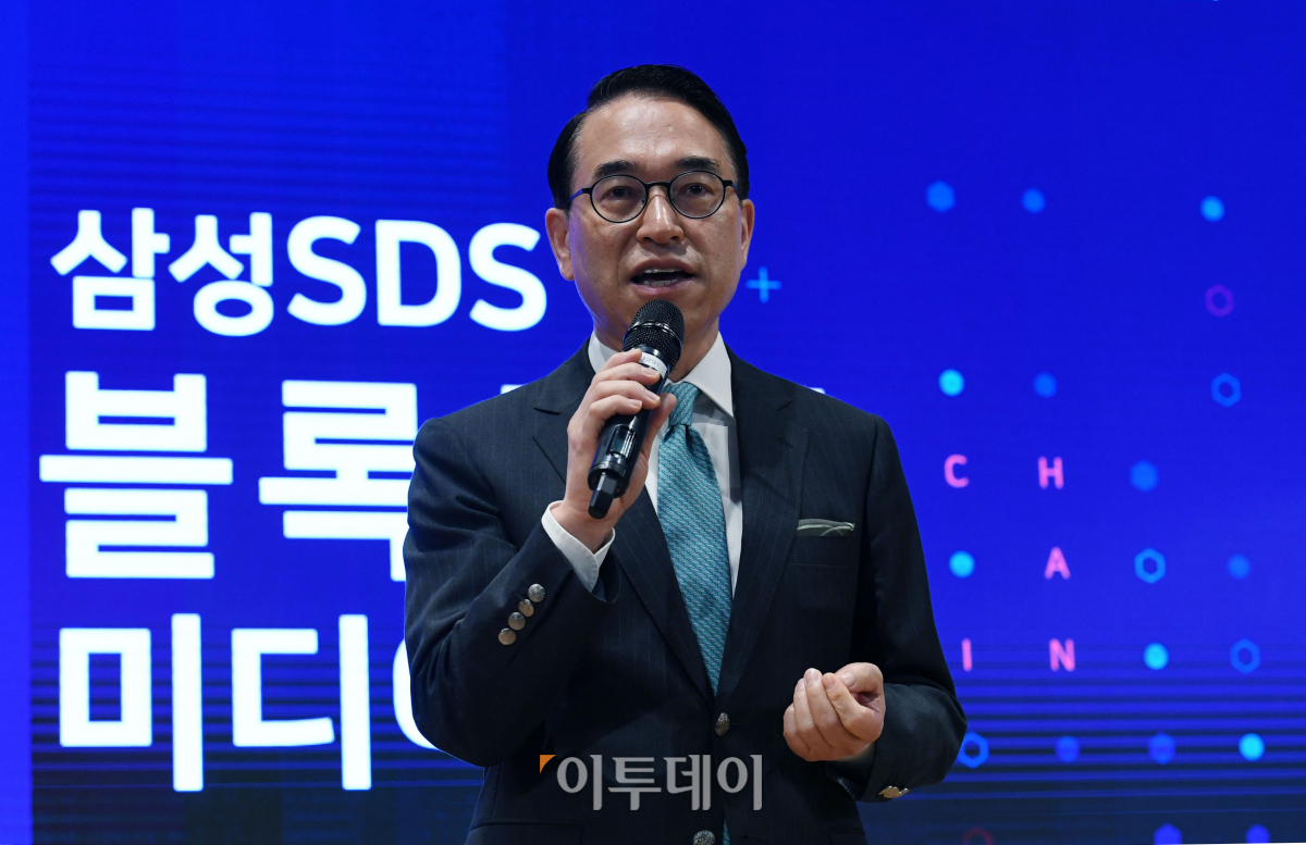 홍원표 삼성SDS 대표이사가 18일 서울 송파구 올림픽로 삼성SDS에서 열린 ‘블록체인 미디어데이’에서 인사말을 하고 있다. 삼성SDS는 이날 행사를 통해 블록체인을 도입하는 기업들의 고민을 소개하고, 그 해결방안을 담은 블록체인 사업 방향인 융복합(Convergence)·연결(Connectivity)·클라우드(Cloud) 등 ‘3C’를 제시했다. 신태현 기자 holjjak@