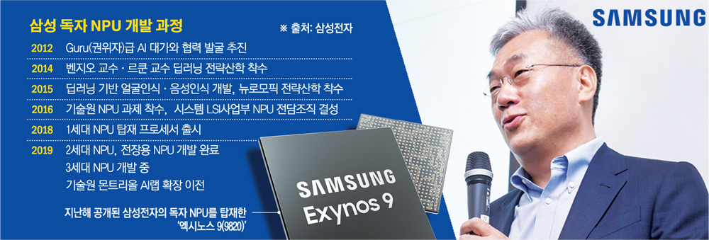 2012년부터 딥러닝 알고리즘 개발을 위해 전세계 AI 학계와 협업을 추진, 2014년부터 세계적 석학인 요슈아 벤지오(Yoshua Bengio) 교수와 협업해 왔다. 2016년 종합기술원에서 NPU 과제에 착수했으며, 시스템 LSI사업부에서 NPU 전담조직을 결성했다.