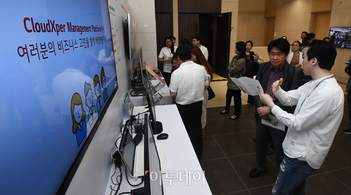 19일 서울 강서구 마곡중앙로 LG사이언스파크에서 열린 LG CNS ‘테크데이 2019’에서 클라우드 통합관리 플랫폼 '클라우드엑스퍼'가 소개되고 있다. 테크데이는 기업 고객에게 최신 IT트렌드와 LG CNS의 신기술 역량을 소개하고, 기업의 디지털 전환 청사진을 제시하는 자리다. LG CNS는 이번 행사에서 공공·금융·서비스 3개 영역으로 세션을 구성해 업종별 특성에 맞게 최신 IT를 적용하는 방안을 제시했다. 신태현 기자 holjjak@