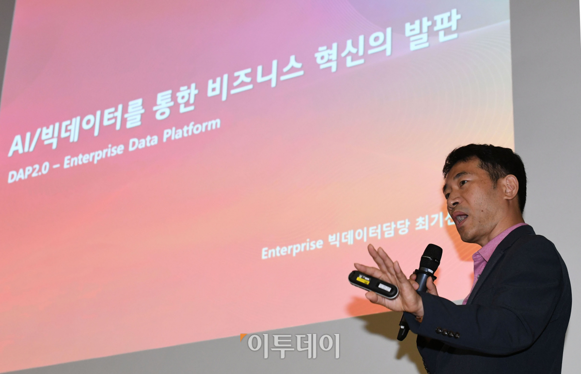 19일 서울 강서구 마곡중앙로 LG사이언스파크에서 열린 LG CNS ‘테크데이 2019’에서 최기선 LG CNS 엔터프라이즈빅데이터 담당이 ‘AI·빅데이터를 통한 비즈니스 혁신의 발판’을 주제로 발표하고 있다. 테크데이는 기업 고객에게 최신 IT트렌드와 LG CNS의 신기술 역량을 소개하고, 기업의 디지털 전환 청사진을 제시하는 자리다. LG CNS는 이번 행사에서 공공·금융·서비스 3개 영역으로 세션을 구성해 업종별 특성에 맞게 최신 IT를 적용하는 방안을 제시했다. 신태현 기자 holjjak@
