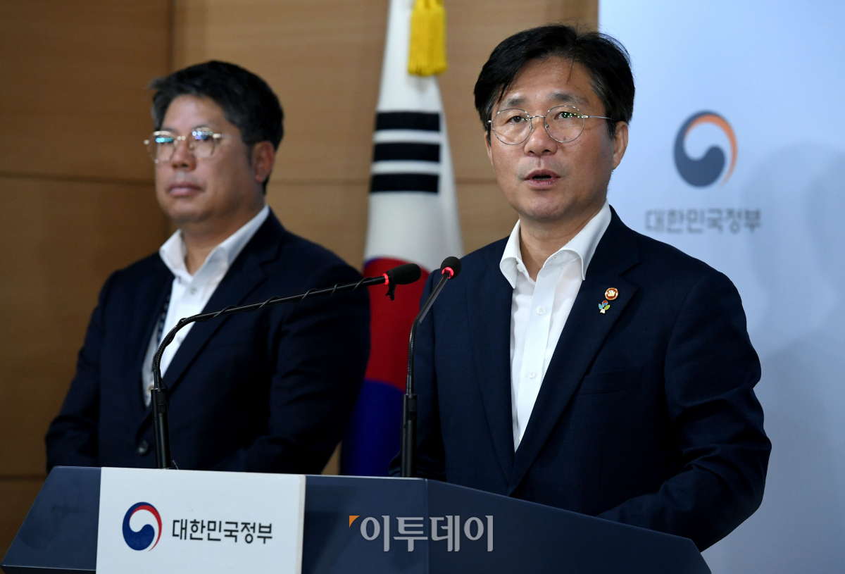성윤모 산업통상자원부 장관이 18일 서울 종로구 세종대로 정부서울청사에서 ‘제조업 르네상스 비전 및 전략’ 브리핑을 갖고 있다. 신태현 기자 holjjak@