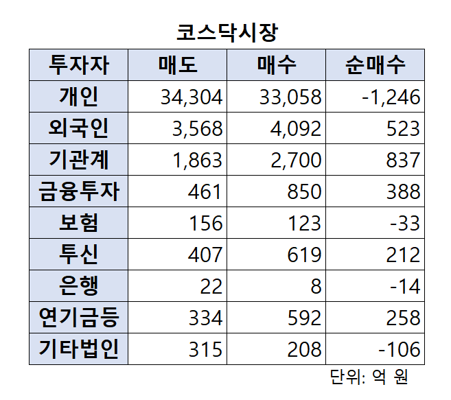 [오늘의 매매동향] 코스닥