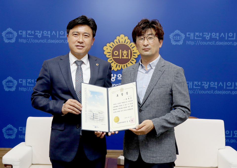 이 소식을 듣고 대전시의회의 김종천 의장은 6월 10일 최 대표에게 표창장을 수여했다.