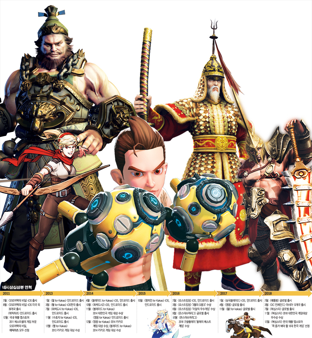 이후 모바일 액션 RPG ‘영웅 for kakao’를 출시했다. 이순신, 무하마드 알리 등 전설적인 위인들을 캐릭터로 활용한 차별화된 콘셉트와 뛰어난 액션으로 큰 인기를 끌었다. 또 ‘영웅 for kakao’는 ‘블레이드 for kakao’와 함께 2014년 카카오 게임 대상을 수상해 작품성도 입증했다. 이외에도 ‘삼국블레이드’, ‘몬스터슈퍼리그’, ‘배틀붐’ 등 다양한 장르의 게임을 선보여 호응을 얻었다.