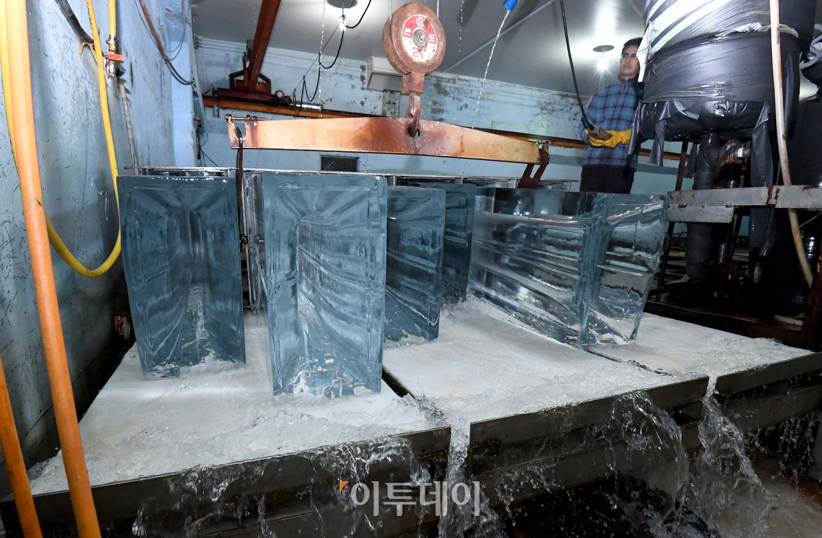 서울에 올해 두 번째 폭염주의보가 발령되고 낮 최고기온이 32도를 기록하는 등 전국에 무더위가 기승을 부린 25일 경기 부천시 신흥로 대원냉동산업사에서 관계자들이 얼음 성수기를 맞아 바쁜 일손을 놀리고 있다. 신태현 기자 holjjak@
