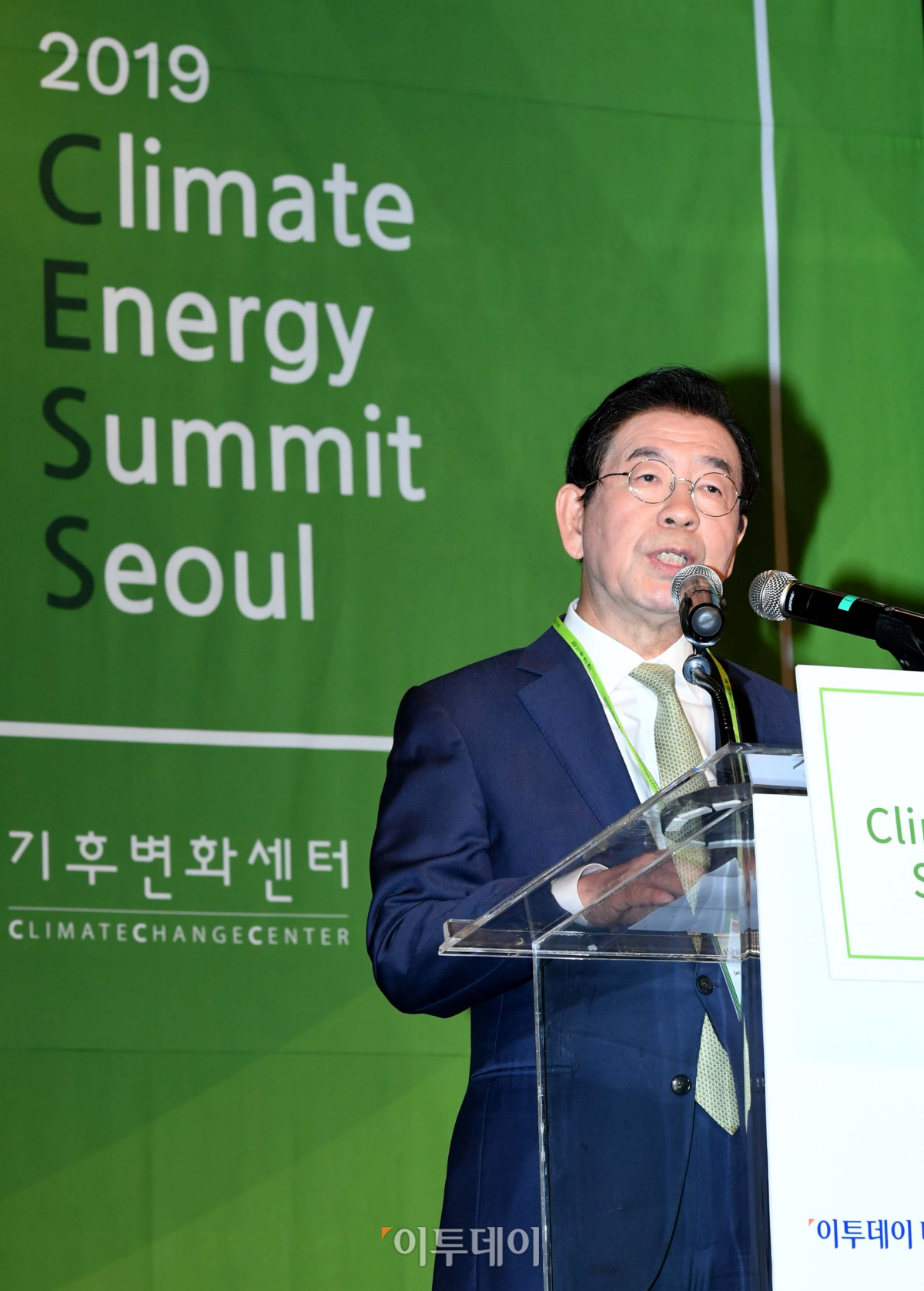 박원순 서울시장이 27일 서울 종로구 새문안로 포시즌스호텔서울에서 열린 ‘서울 기후-에너지 회의 2019’에서 축사를 하고 있다. ‘세계화 4.0과 신기후체제 대응 스마트시티 전략’을 주제로 재단법인 기후변화센터와 이투데이 미디어가 공동 주최한 이날 회의는 지속가능한 경제발전을 이끌어가는 스마트시티 및 기후-에너지 분야의 동향과 비전을 소개함으로써 지속가능한 경제 성장의 모멘텀 창출에 기여하기 위해 마련됐다. 신태현 기자 holjjak@