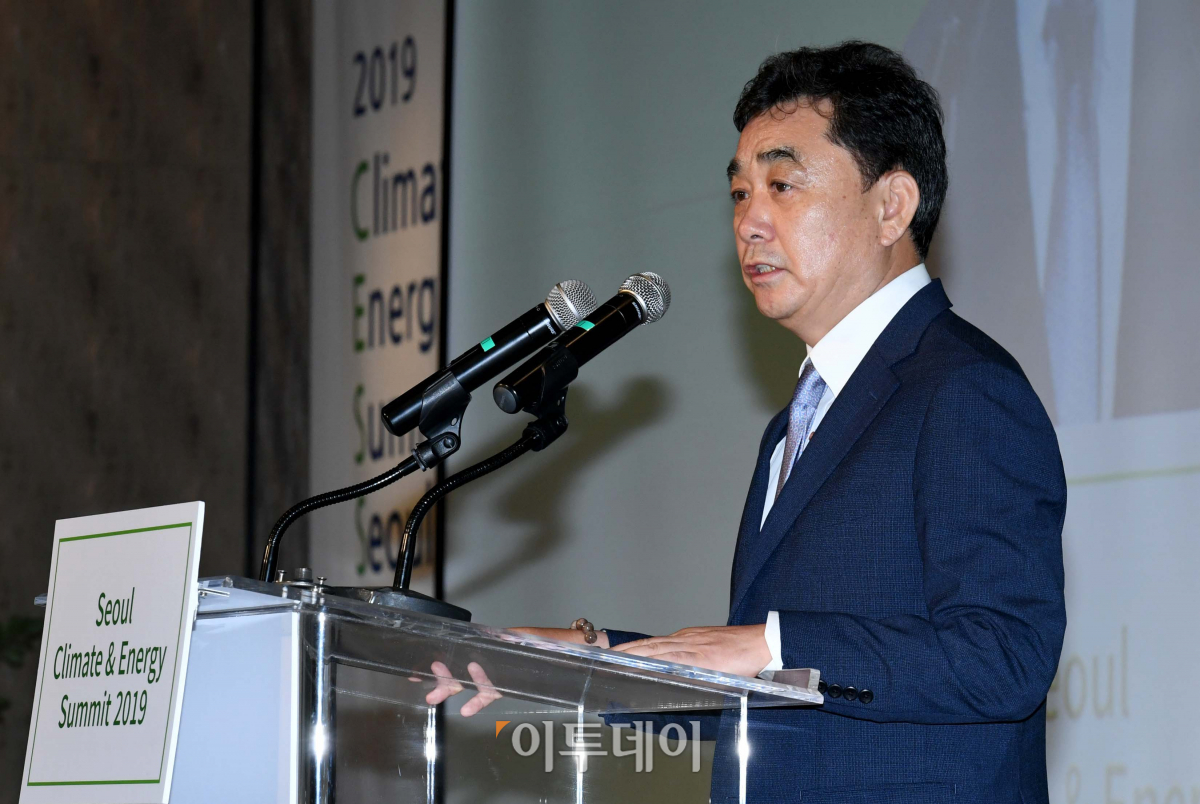 김상철 이투데이 대표이사가 27일 서울 종로구 새문안로 포시즌스호텔서울에서 열린 ‘서울 기후-에너지 회의 2019’에서 개회사를 하고 있다. ‘세계화 4.0과 신기후체제 대응 스마트시티 전략’을 주제로 재단법인 기후변화센터와 이투데이 미디어가 공동 주최한 이날 회의는 지속가능한 경제발전을 이끌어가는 스마트시티 및 기후-에너지 분야의 동향과 비전을 소개함으로써 지속가능한 경제 성장의 모멘텀 창출에 기여하기 위해 마련됐다. 신태현 기자 holjjak@