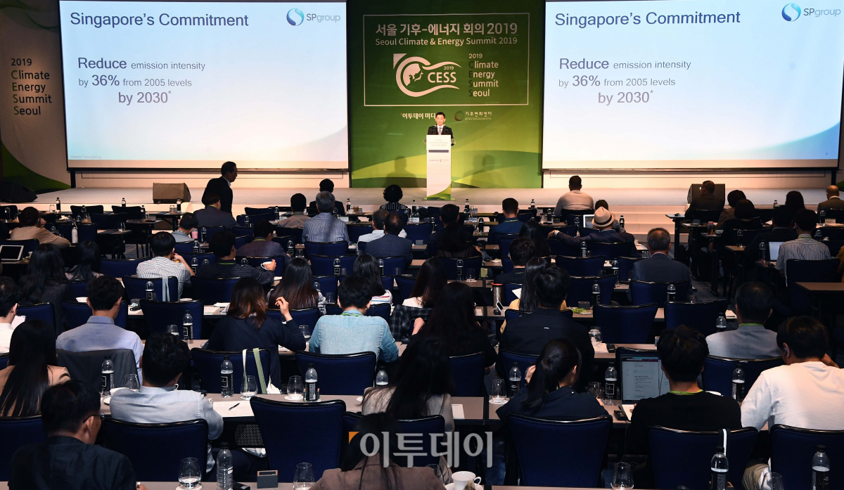 킴 윈 웡(Kim Yin Wong) 싱가포르파워그룹 최고경영자가 27일 서울 종로구 새문안로 포시즌스호텔서울에서 열린 ‘서울 기후-에너지 회의 2019’에서 ‘세계화 4.0시대와 신기후체제의 미래 성장 동력’을 주제로 발표하고 있다. ‘세계화 4.0과 신기후체제 대응 스마트시티 전략’을 주제로 재단법인 기후변화센터와 이투데이 미디어가 공동 주최한 이날 회의는 지속가능한 경제발전을 이끌어가는 스마트시티 및 기후-에너지 분야의 동향과 비전을 소개함으로써 지속가능한 경제 성장의 모멘텀 창출에 기여하기 위해 마련됐다. 신태현 기자 holjjak@
