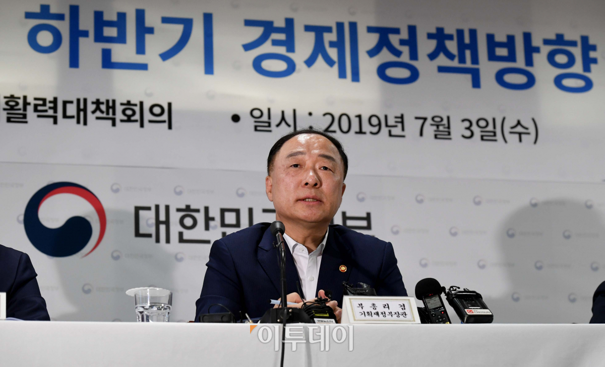 홍남기 경제부총리 겸 기획재정부 장관이 3일 서울 영등포구 여의도 수출입은행에서 하반기 경제정책방향을 발표하고 있다. 신태현 기자 holjjak@