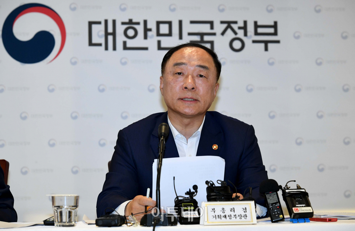 홍남기 경제부총리 겸 기획재정부 장관이 3일 서울 영등포구 여의도 수출입은행에서 하반기 경제정책방향을 발표하고 있다. 신태현 기자 holjjak@