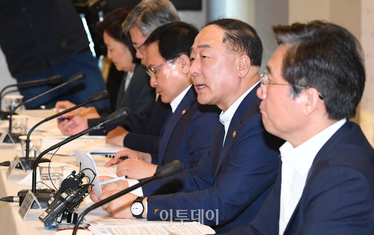 홍남기 경제부총리 겸 기획재정부 장관이 3일 서울 영등포구 여의도 수출입은행에서 하반기 경제정책방향을 발표하고 있다. 신태현 기자 holjjak@