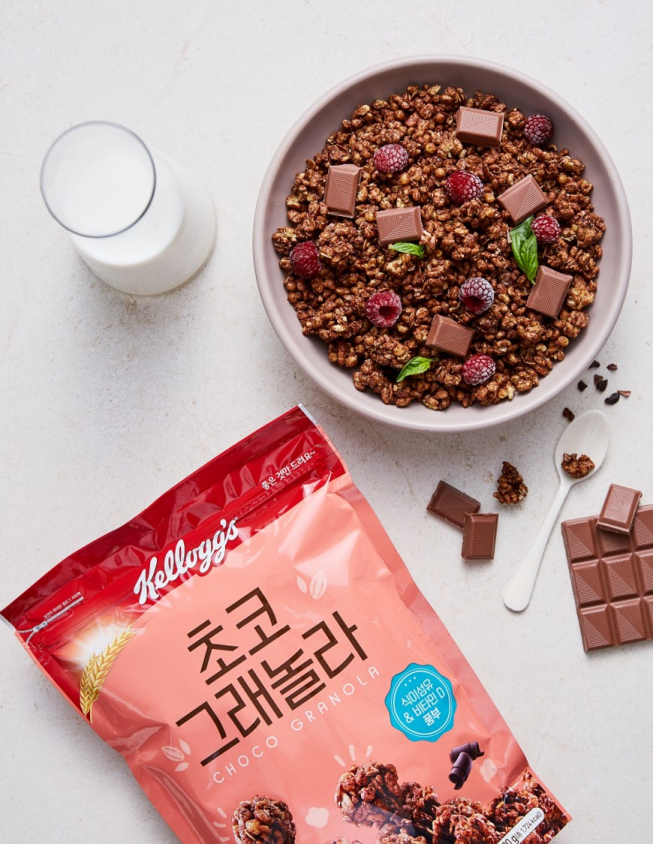 이번에 출시한 ‘초코 그래놀라’는 식이섬유가 가득한 통곡물 올리고당 그래놀라가 80% 이상 함유되어 곡물의 담백하고 고소한 맛을 느낄 수 있다. 또한 비타민D 등을 더해 풍부한 영양 섭취도 가능하다.