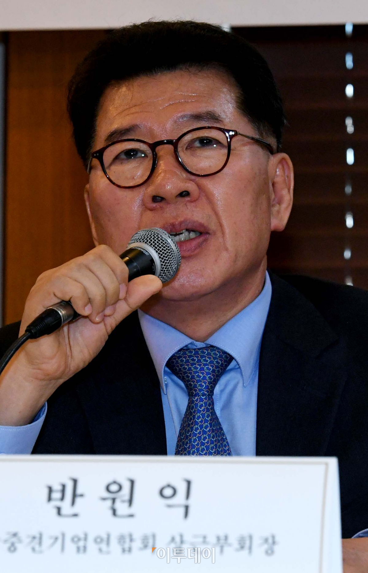 9일 서울 중구 세종대로 프레스센터에서 한국경영자총협회·중소기업중앙회·한국중견기업연합회 주최로 열린 ‘2020년 적용 최저임금 결정에 대한 주요 사용자단체 공동 기자회견’에서 반원익 중견련 상근부회장이 발언하고 있다. 경영계는 이날 기자회견에서 그동안 가팔랐던 상승폭을 고려해 내년도 최저임금은 마이너스로 하향조정해야 한다는 입장을 밝혔다. 신태현 기자 holjjak@