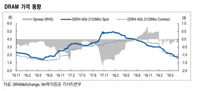 도현우 연구원은 "지난 9일 디램익스체인지 기준 DRAM 현물 가격이 상승했다"며 "DRAM 현물 가격 상승은 1년 7개월만에 처음"이라고 밝혔다.