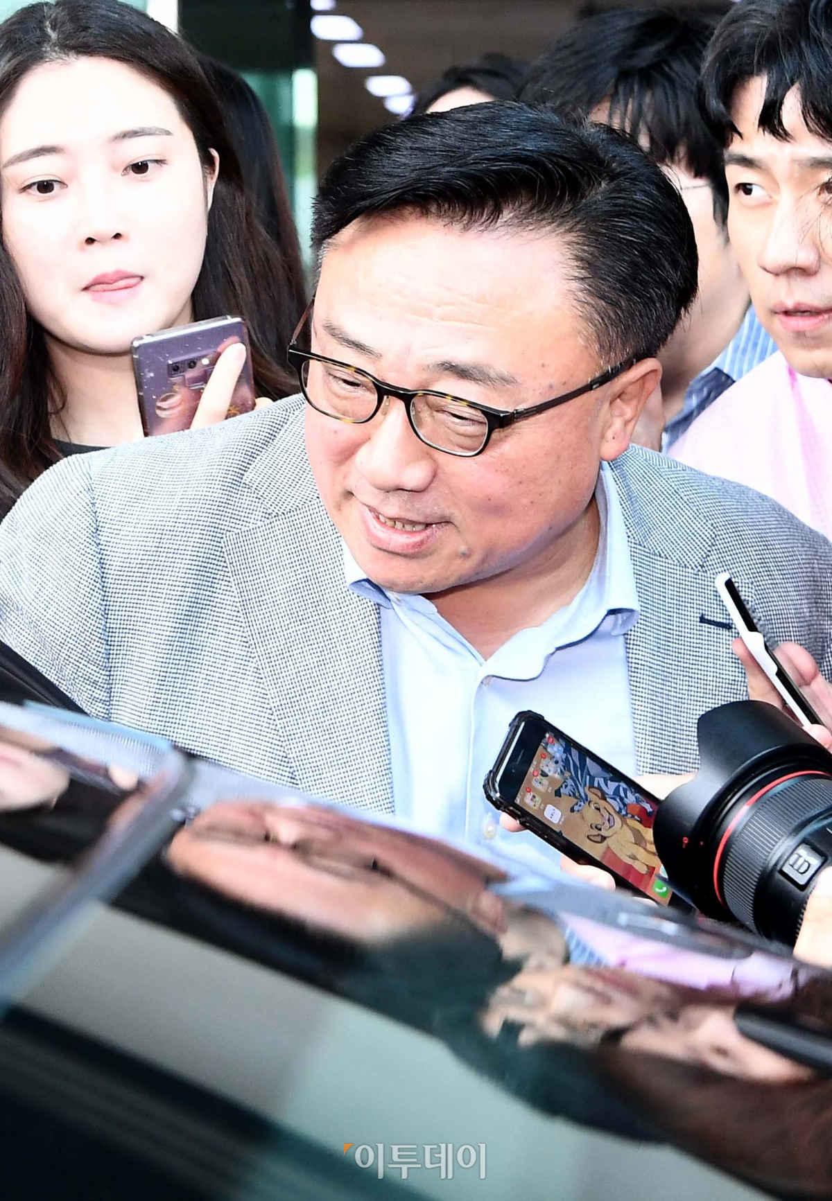 고동진 삼성전자 사장(IM부문장)이 11일 인도출장을 마치고 서울 강서구 김포국제공항을 통해 귀국하고 있다. 신태현 기자 holjjak@