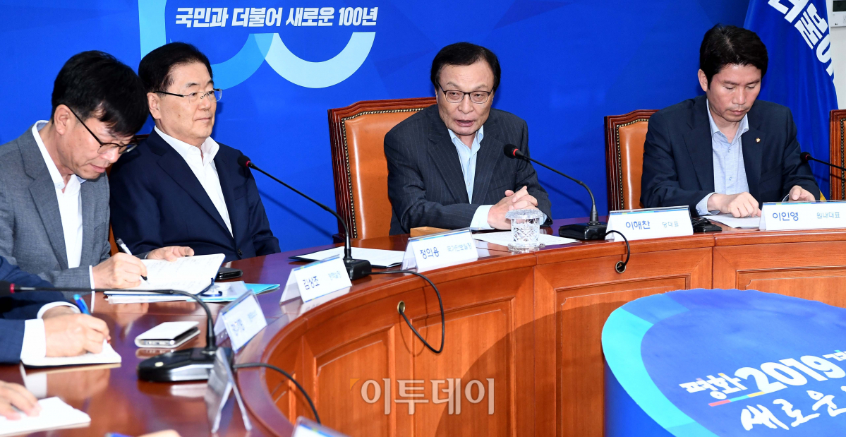 이해찬 더불어민주당 대표가 16일 서울 여의도 국회에서 열린 일본 경제보복대책 당·청 연석회의에서 발언하고 있다. 신태현 기자 holjjak@