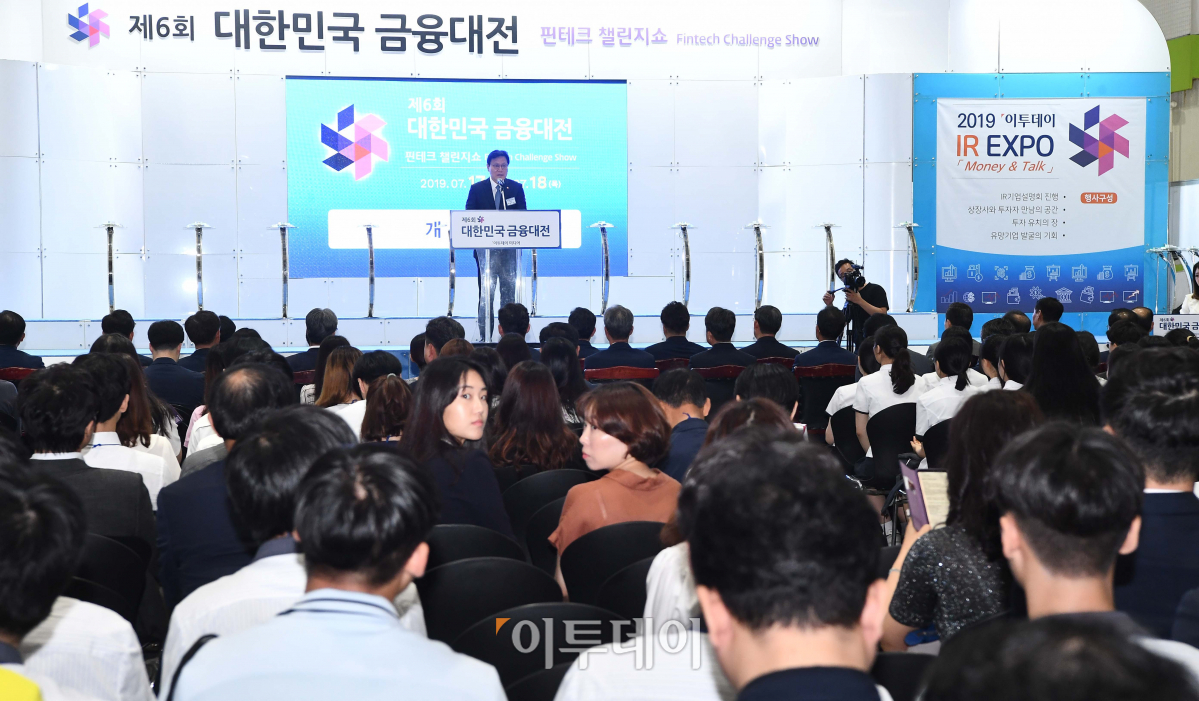 이투데이 미디어 주최 '제6회 대한민국 금융대전'이 17일 서울 강남구 삼성동 코엑스 C홀에서 성황리에 개막한 가운데 최종구 금융위원장이 축사를 하고 있다. 오는 18일까지 열리는 이번 행사는 '핀테크 챌린지 쇼'를 주제로 금융권의 디지털 플랫폼을 경험하고 관련 기업의 혁신 기술을 체험할 수 있는 장이 펼쳐진다. 핀테크 랩 투자유치 설명회를 비롯해 예비 창업자를 위한 다양한 강연과 금융권 취업을 희망하는 청년들을 위한 모의 면접도 진행한다. 신태현 기자 holjjak@