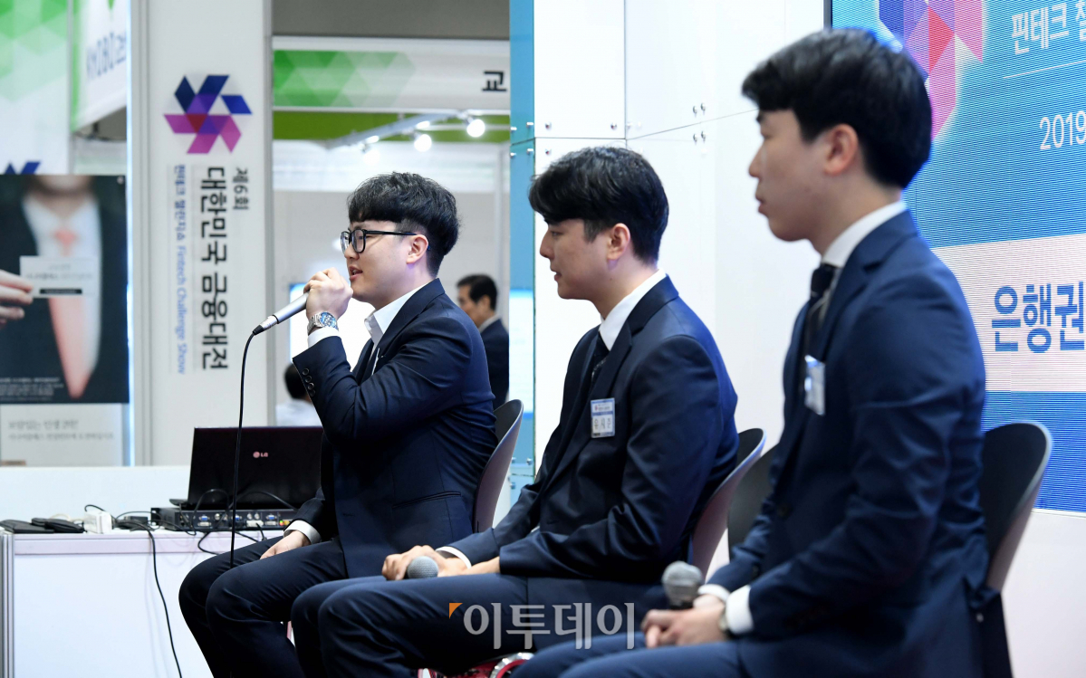 18일 서울 강남구 삼성동 코엑스 C홀에서 열린 '제6회 대한민국 금융대전'에서 참석자들이 은행권 인사담당자와 모의 면접을 보고 있다. 이투데이 미디어가 주최한 이번 행사는 '핀테크 챌린지 쇼'를 주제로 금융권의 디지털 플랫폼을 경험하고 관련 기업의 혁신 기술을 체험할 수 있는 장이 펼쳐진다. 핀테크 랩 투자유치 설명회를 비롯해 예비 창업자를 위한 다양한 강연과 금융권 취업을 희망하는 청년들을 위한 모의 면접도 진행됐다. 신태현 기자 holjjak@