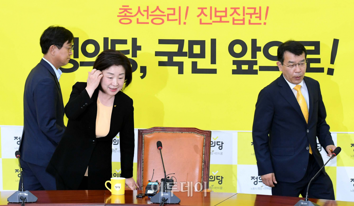 심상정 정의당 신임 대표가 21일 서울 여의도 국회에서 취임기념 기자간담회를 갖기 위해 회의실로 들어서고 있다. 신태현 기자 holjjak@