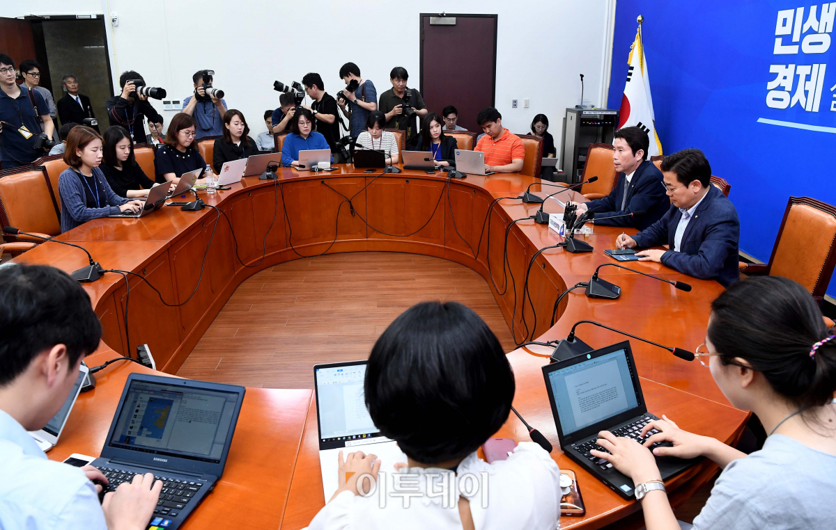 [포토] 추경관련 기자간담회 가진 이인영 더불어민주당 원내대표