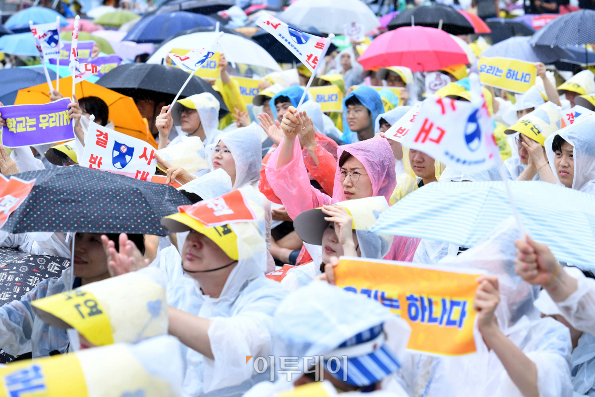 서울지역 8개 자율형사립고에 대한 교육청의 청문을 하루 앞둔 21일 서울 종로구 광화문광장에서 서울 자사고 학부모 연합회(자학연) 주최로 열린 ‘자사고 청소년 동아리 문화 축제’에서 학부모와 학생들이 자사고 지정 취소 반대 구호를 외치고 있다. 학생들의 공연 등 자사고 교육성과를 알리는 축제형식 집회로 진행된 이날 자사고 청소년 동아리 문화 축제에서 학부모와 학생들은 자사고가 입시 위주 교육만 하는 것이 아니라며 동의 없는 폐지는 불가하다고 주장했다. 신태현 기자 holjjak@