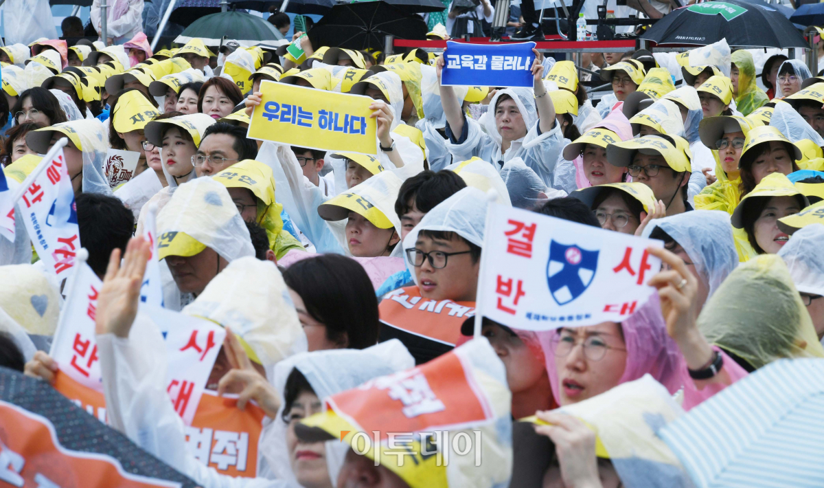서울지역 8개 자율형사립고에 대한 교육청의 청문을 하루 앞둔 21일 서울 종로구 광화문광장에서 서울 자사고 학부모 연합회(자학연) 주최로 열린 ‘자사고 청소년 동아리 문화 축제’에서 학부모와 학생들이 자사고 지정 취소 반대 구호를 외치고 있다. 학생들의 공연 등 자사고 교육성과를 알리는 축제형식 집회로 진행된 이날 자사고 청소년 동아리 문화 축제에서 학부모와 학생들은 자사고가 입시 위주 교육만 하는 것이 아니라며 동의 없는 폐지는 불가하다고 주장했다. 신태현 기자 holjjak@