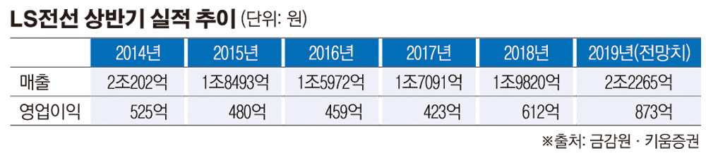 22일 업계 및 증권가에 따르면 LS전선은 올해 상반기 호실적을 기록할 전망이다. 키움증권 김지산 연구원은 보고서를 통해 LS전선이 상반기 매출 2조2265억 원, 영업이익 873억 원을 거둔 것으로 예상했다.