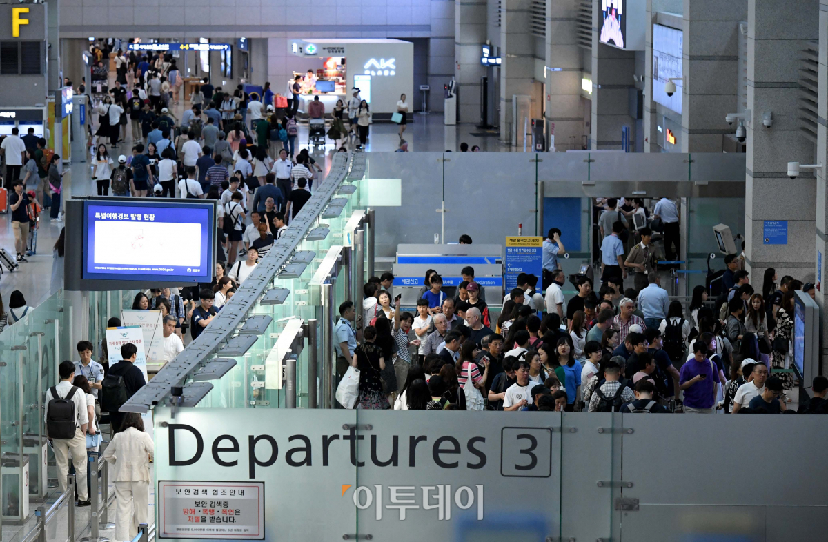 본격적인 여름 휴가철에 접어든 24일 인천 중구 인천국제공항 출국장이 해외여행을 떠나는 피서객들로 붐비고 있다. 신태현 기자 holjjak@