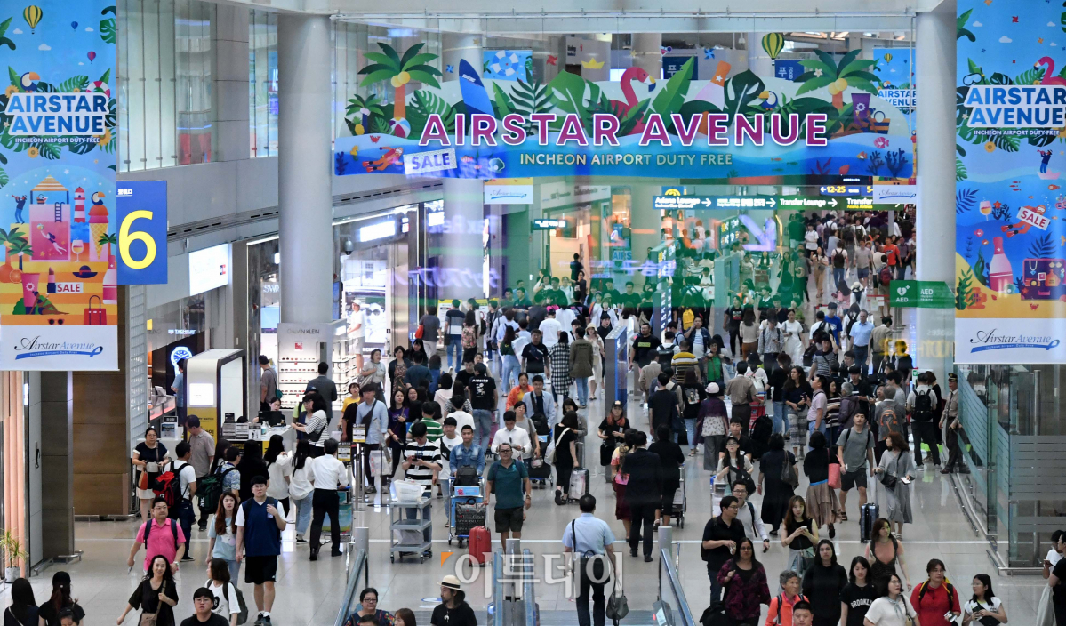 본격적인 여름 휴가철에 접어든 24일 인천 중구 인천국제공항 면세구역이 해외여행을 떠나는 피서객들로 붐비고 있다. 신태현 기자 holjjak@