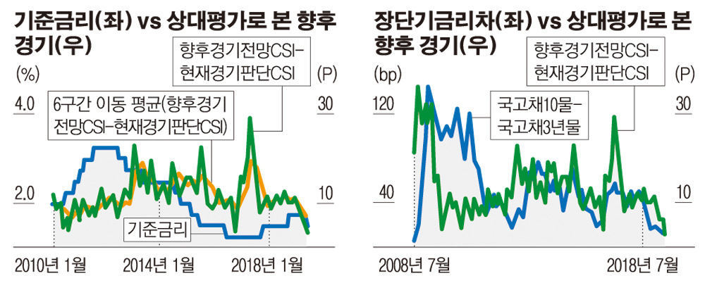 향후경기전망 현재경기판단 심리차 불과 3포인트..장단기금리차도 금융위기 후 최저